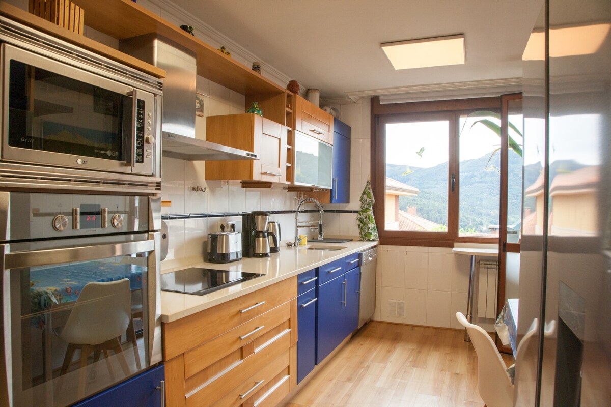 - Spacious apartment for up to 4 people* in a rural property with mountain views. (Read property details for more information) - Independent private entrance and garden. - 10 minutes drive to local services. - Perfect place to disconnect, avoid crowds and relax. - 25 mins drive to beaches and Santander. - Travel cot and low bed available for babies and toddlers -Outdoor covered barbecue kitchen with charcoal and gas grill.
