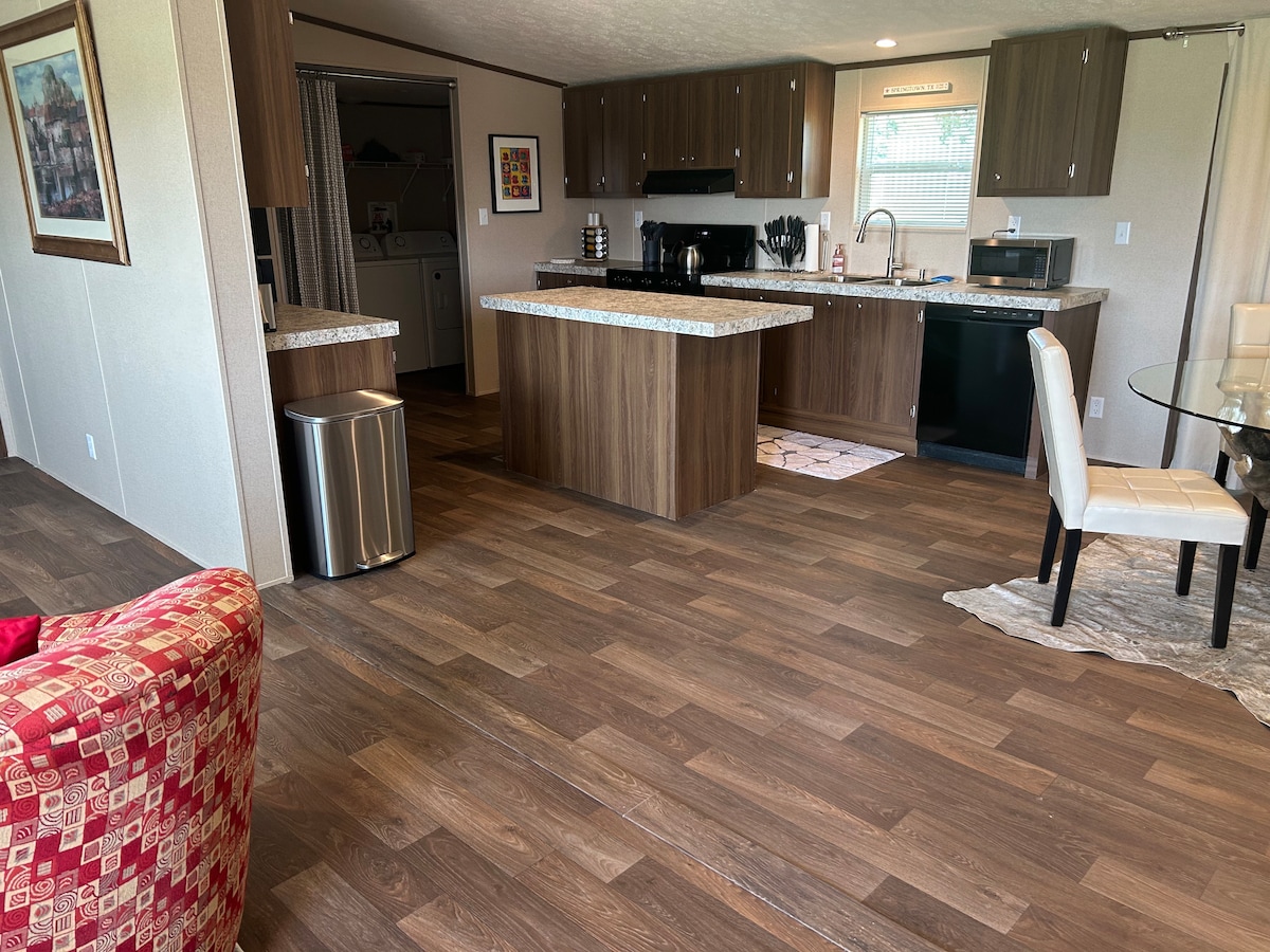 The Farmhouse is a two bedroom rustic home with updated amenities. It has a living room, large country kitchen and dining area, two bedrooms-both with queen beds and one bath. There is a large covered deck with a chiminea for chilly days or evenings while waiting for deer and wildlife sightings. There is also a rustic party barn with cozy lighting and a fire pit. There are plenty of sunny spots or shady places to just hang out and enjoy the fresh air.
