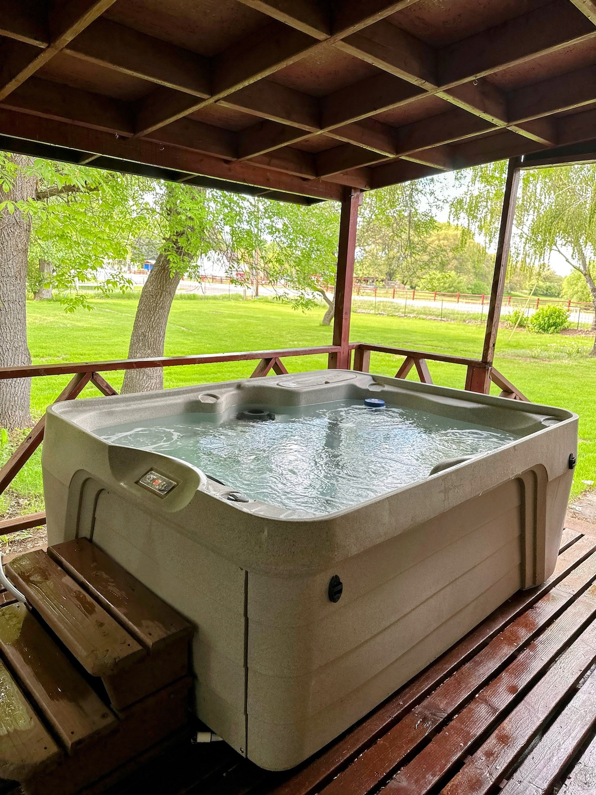 Relax and unwind in the trees---The Littlewoods Lodge in Rexburg is the perfect blend of modern and stylish surroundings. Nestled in your own private forest, you are close to town and various attractions (easy access from hwy 20, right on Yellowstone Bear World Road). The outdoor space boasts a fire pit, wood benches, picnic area, gas grill, edison lights, and hot tub. Newly constructed modern lodge has soaring ceilings with 2 bedrooms, stone fireplace, walk-in shower, and stocked kitchen.
