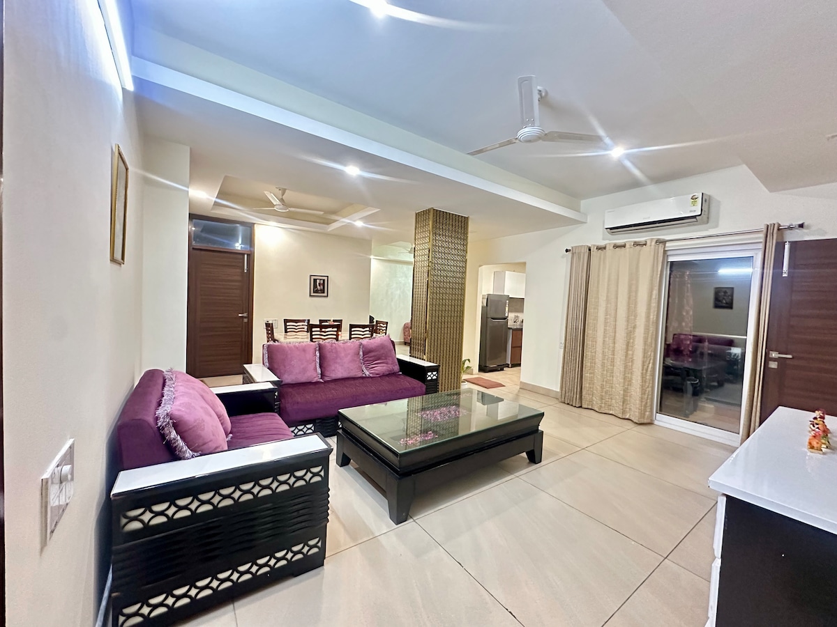 Relax with your family at our Peaceful, Luxurious and Newly Renovated 2bhk with stylish interiors. Featured by @elledecorindia and @homepublicationme thanks to @idesign_spaces. The apartment is situated in a peaceful residential complex, right on Main Badrinath Highway and next to Janki Setu Ghat. There is 24hrs security and power backup within the premises.