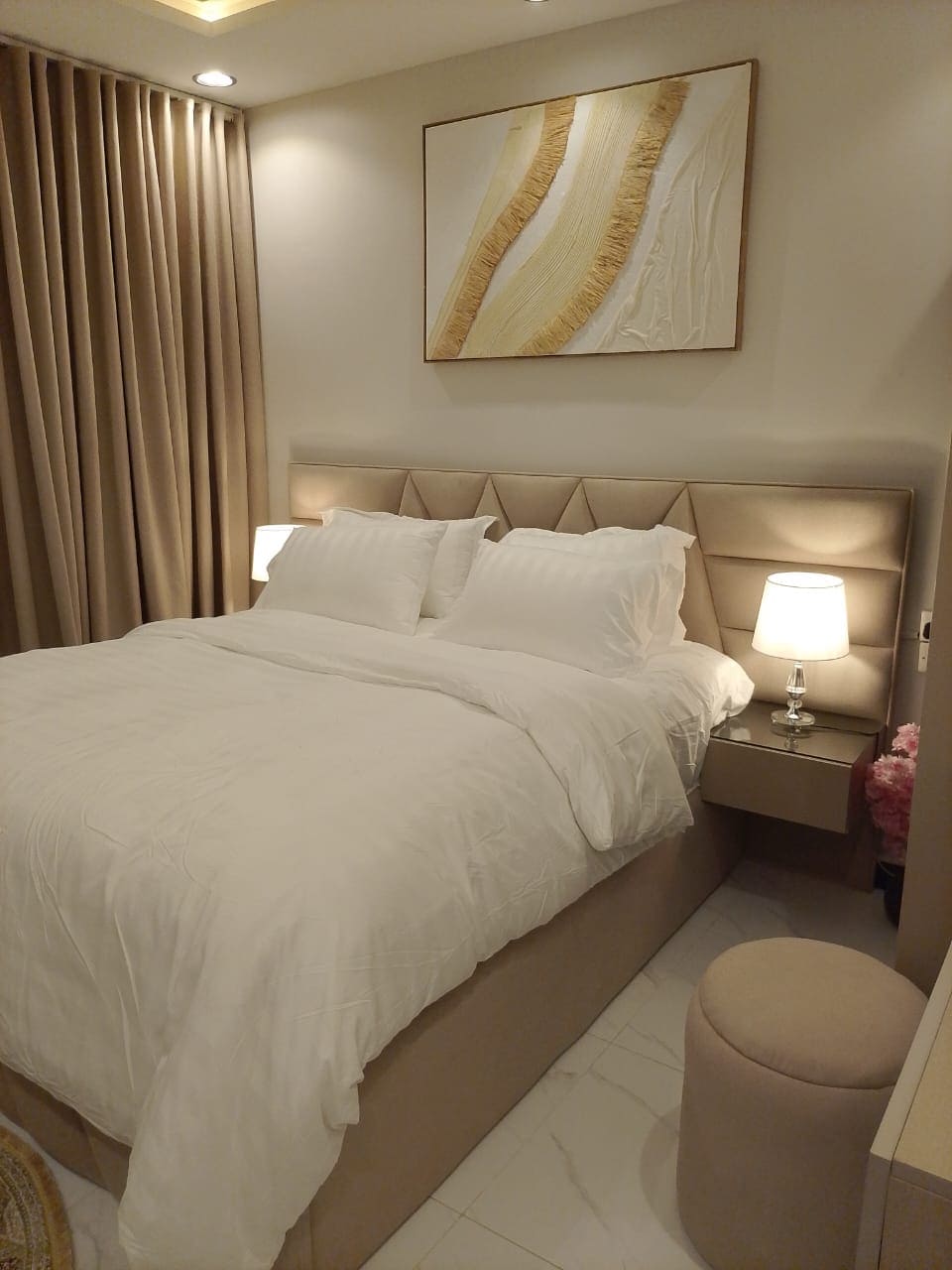 استمتع بإقامة فاخرة ومريحة في شقتنا المصممة بعناية! غرفة نوم مميزة بسرير مزدوج فاخر لشخصين، صالة رحبة للاسترخاء، مطبخ مجهز بالكامل لإعداد أشهى الوجبات، وحمام عصري حديث. شقتنا تمنحك الراحة والفخامة مع كل التفاصيل، لتجربة إقامة لا تُنسى تشعرك وكأنك في بيتك.