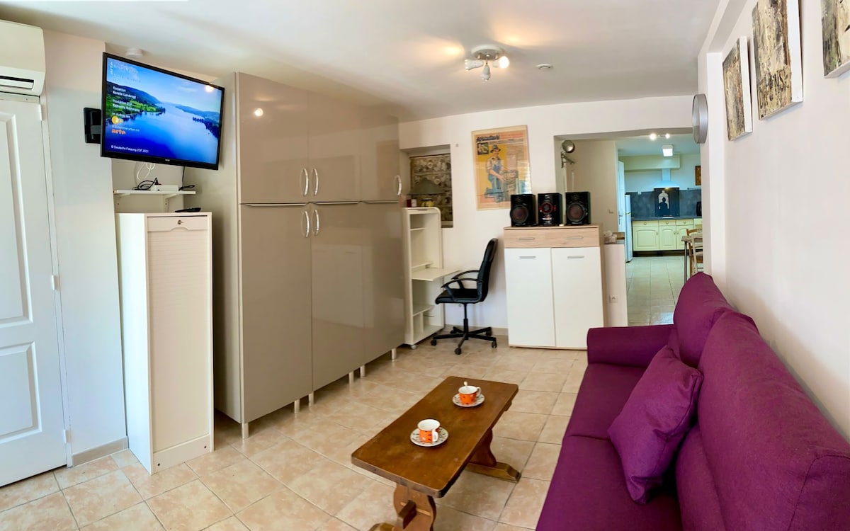 Découvrez ce charmant cocon provençal de 30 m²,. Cet espace calme et accueillant est parfait pour une escapade relaxante, offrant un cadre ombragé propice à la détente tout en étant à seulement 10 minutes de l'autoroute A9. Vous disposerez de toutes les commodités nécessaires : climatisation dans la chambre, machine à laver, cafetière, ainsi que des serviettes, des draps et du savon fournis pour un séjour sans souci. Profitez de l’accès à la piscine jusqu'à fin août, partagée avec nous.