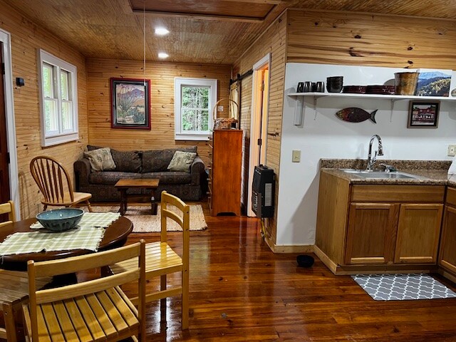 Constructed from two old tobacco barns (with fireplace), this property provides a unique experience-connecting the past & present. The cabin is surrounded by nature’s beauty and Big Reed Island river flows only feet from the front porch. Set on 32 acres, the cabin has a large porch with rocking chairs perfect to enjoy views of the river & mountains. New addition includes an outdoor shower! Please expect no internet, a TV for DVD/CDs only and limited cell reception. Truly unplug & relax.