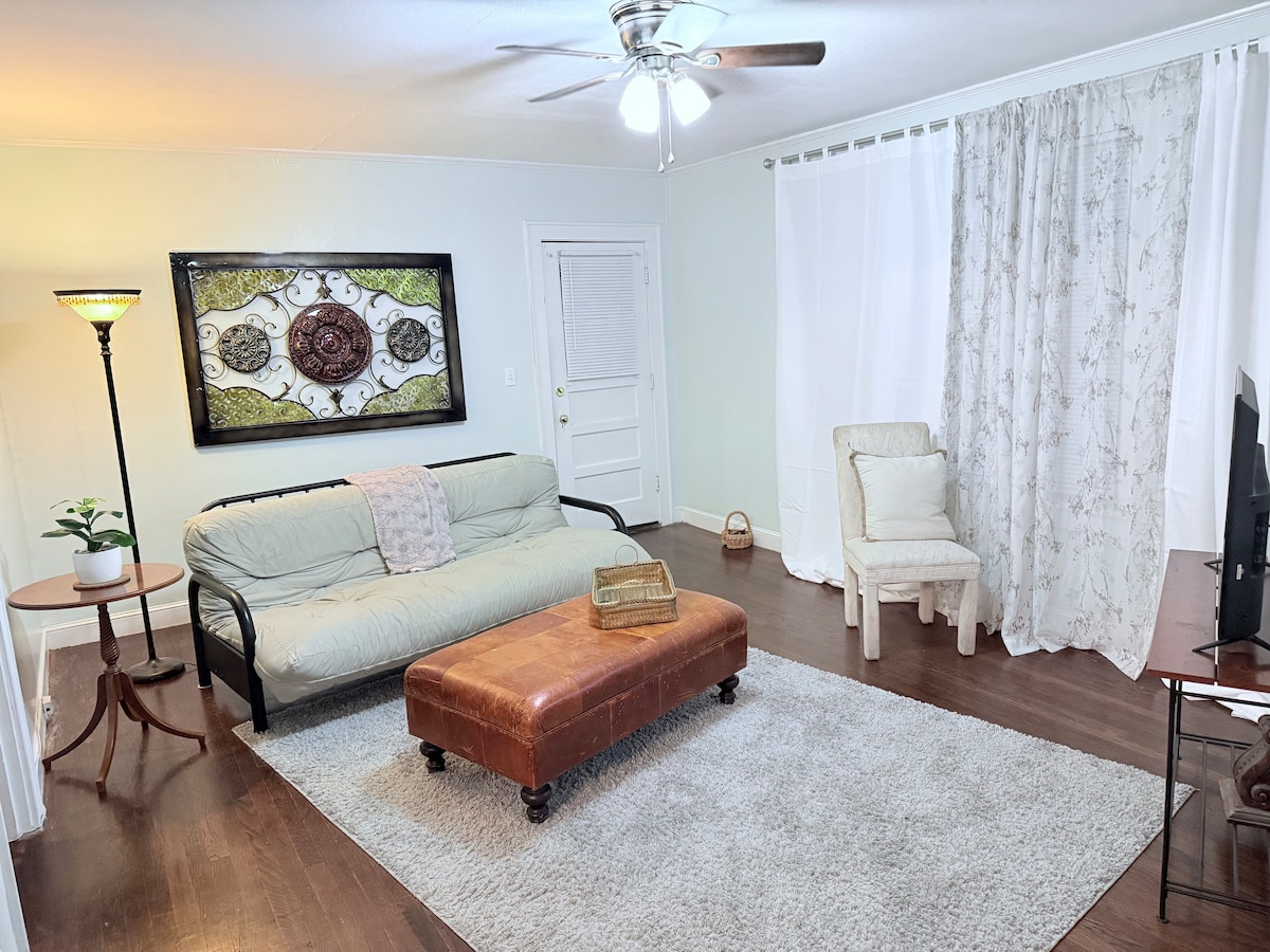 Surround yourself in a garden and relax in this peaceful cottage. Enjoy a refreshing swim in the shared pool or detox in the sauna. Treat yourself to a no chores stay! You’ll enjoy ad-free Hulu, high-speed internet, spacious setting, desk area and full bathroom with washer and dryer. Minutes away from attractions so it's easy and quick to enjoy the sights and experiences of the city. ** NO smoking/vaping inside unit or on the premises (includes front yard). NO SMOKERS ** 22-3
