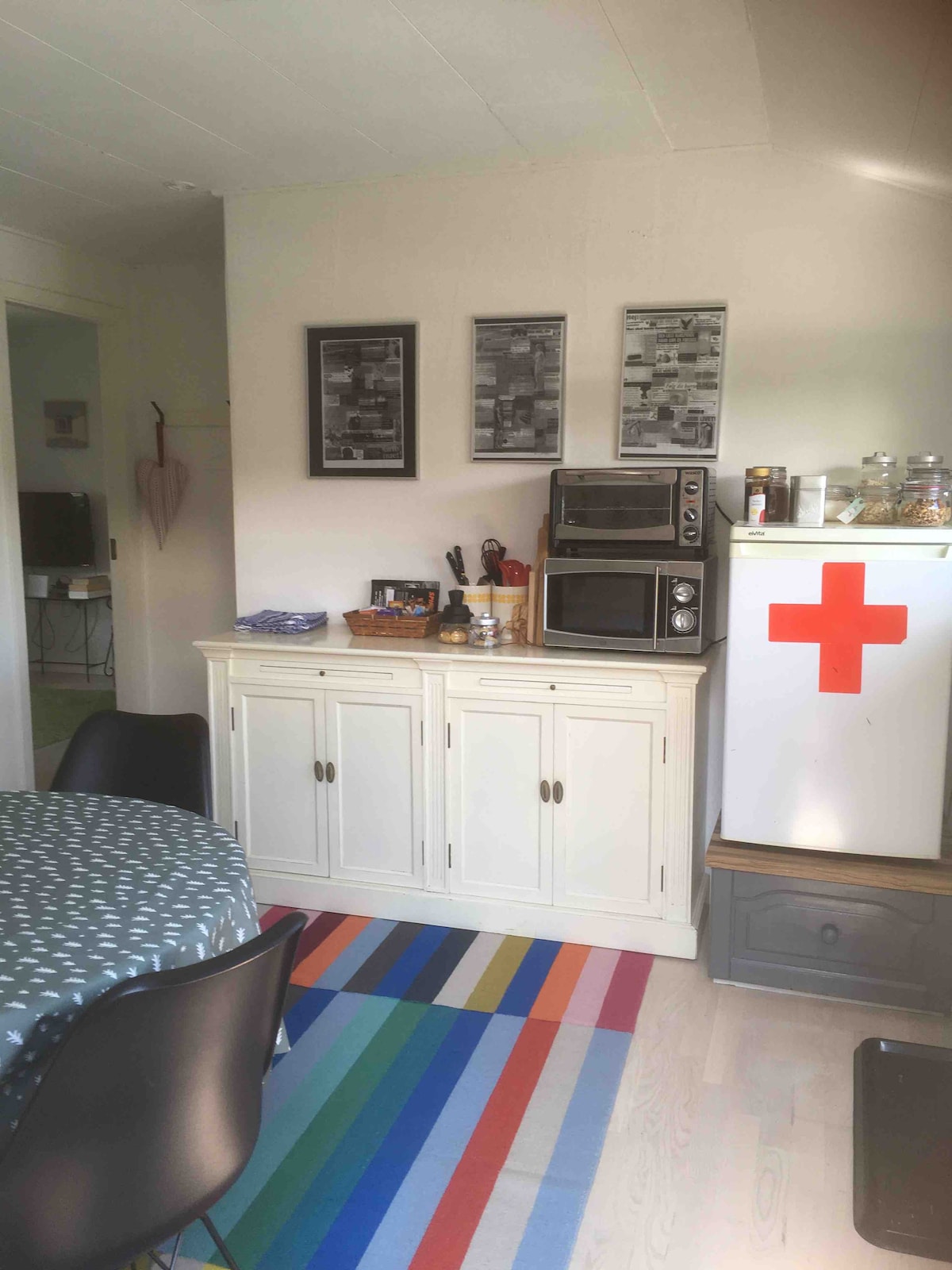 50 years ago, a Sprite 400 caravan, was heaven for escapists, hedonists, and people who needed to 'get out'. Today, you can experience life in a tiny Sprite 400 - placed in gorgeous surroundings. Yes, it's tiny. The double bed is tiny (120 cm X 200 cm). The extra bed is tiny. The sink is tiny. But it will not be a tiny experience. The surrounding landscape is huge and plentiful. Private beach, forest and cliff viewpoint within walking distance. Bring your camera and a positive mindset :-)