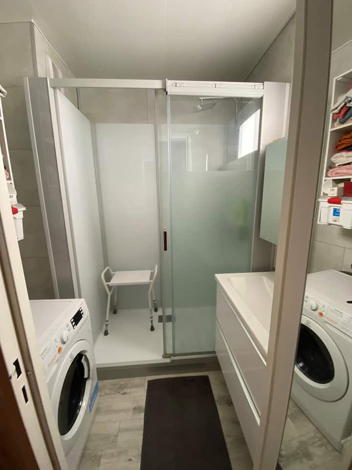 - Shared half bathroom