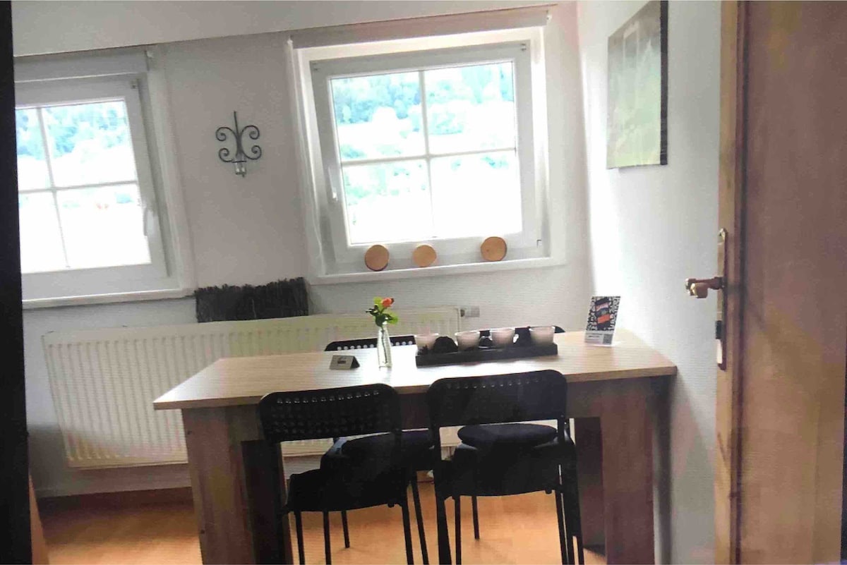 Vacation in the middle of nature, mountains, forests and valleys of the Swabian Alps. Our apartment is located on the edge of a small idyllic village of 450 inhabitants (near the city of Balingen) with a corner shop, playground and outdoor swimming pool. On the garden level of a detached house, bright and friendly rooms, a covered terrace with garden area and a fantastic view over the whole valley await you. From your sunbathing area, you can relax and enjoy the view and the tranquility.