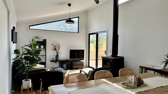 Experience beauty, calm and peace in this beautifully styled, luxurious cottage for two adults. Unwind in front of the crackling wood fire with a glass of wine or a hot cuppa. Relax in the soaker bath and fall asleep at night in the luxurious King sized bed with its snowy white linen. Wake up to spectacular mountain and valley views while you enjoy your breakfast looking out the huge picture windows. Say hello to the resident wildlife including kangaroos and wood ducks and just 'be'.