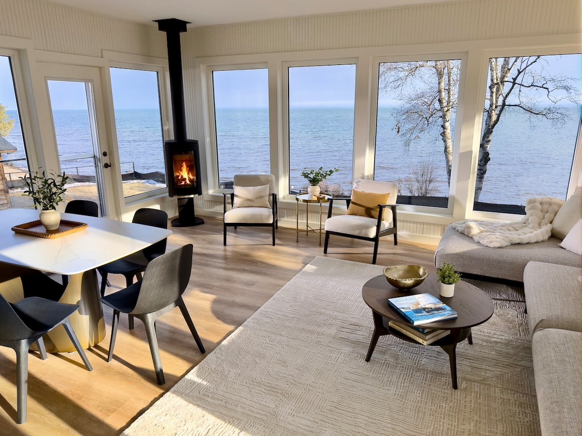 Storage containers converted into a Nordic sauna and living space. Set in the woods half a mile from the sandy south shore of LAKE SUPERIOR. Our two-person occupancy and minimal design are curated to re-focus and re-fresh its inhabitants. Located on 80 acres of private land, you will fall in love with the peace and quiet. Whether you’re looking for a romantic couples getaway, spa weekend, or workspace as a digital nomad, Sölveig Stay was designed to spark creativity and relaxation.
