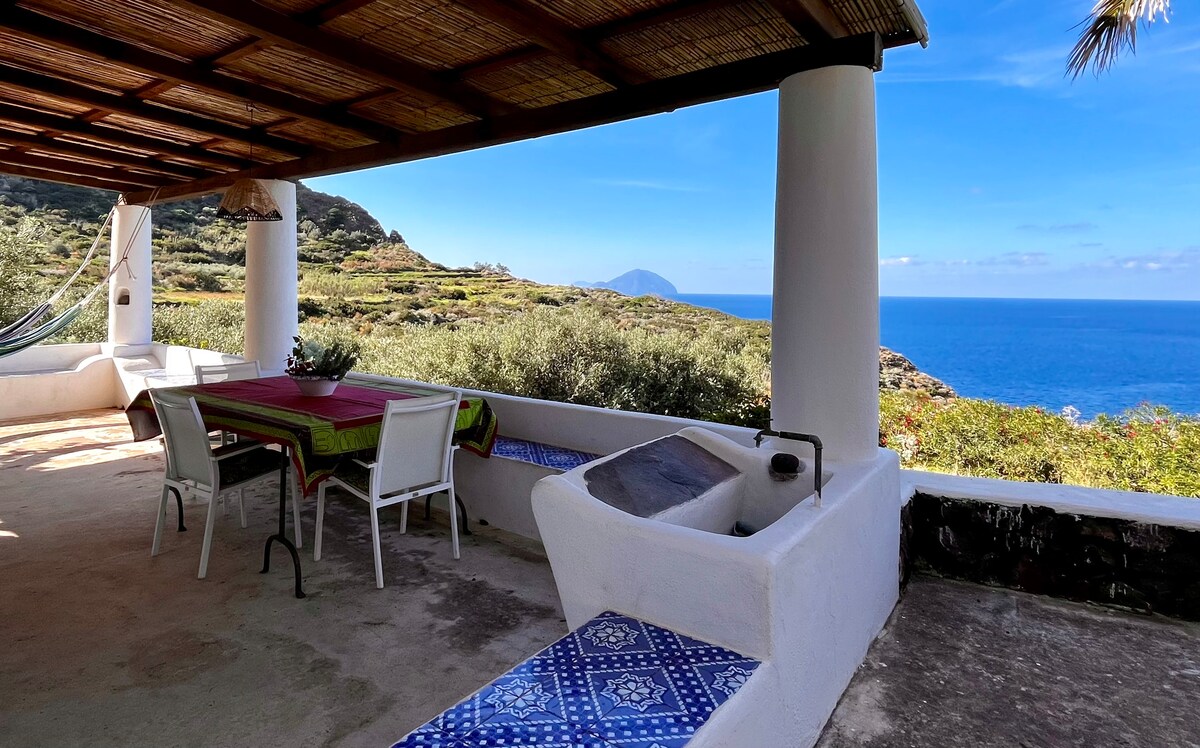 tipical aeolian house with sea view and sunset. private swimmingpool. ideal location for those who love nature, for those seeking privacy, walking, trekking, reading a book on an hammock. there is a gas barbeque . WI FI private use of a barrel sauna with a wood oven , typical finnish sauna . wood hot tub