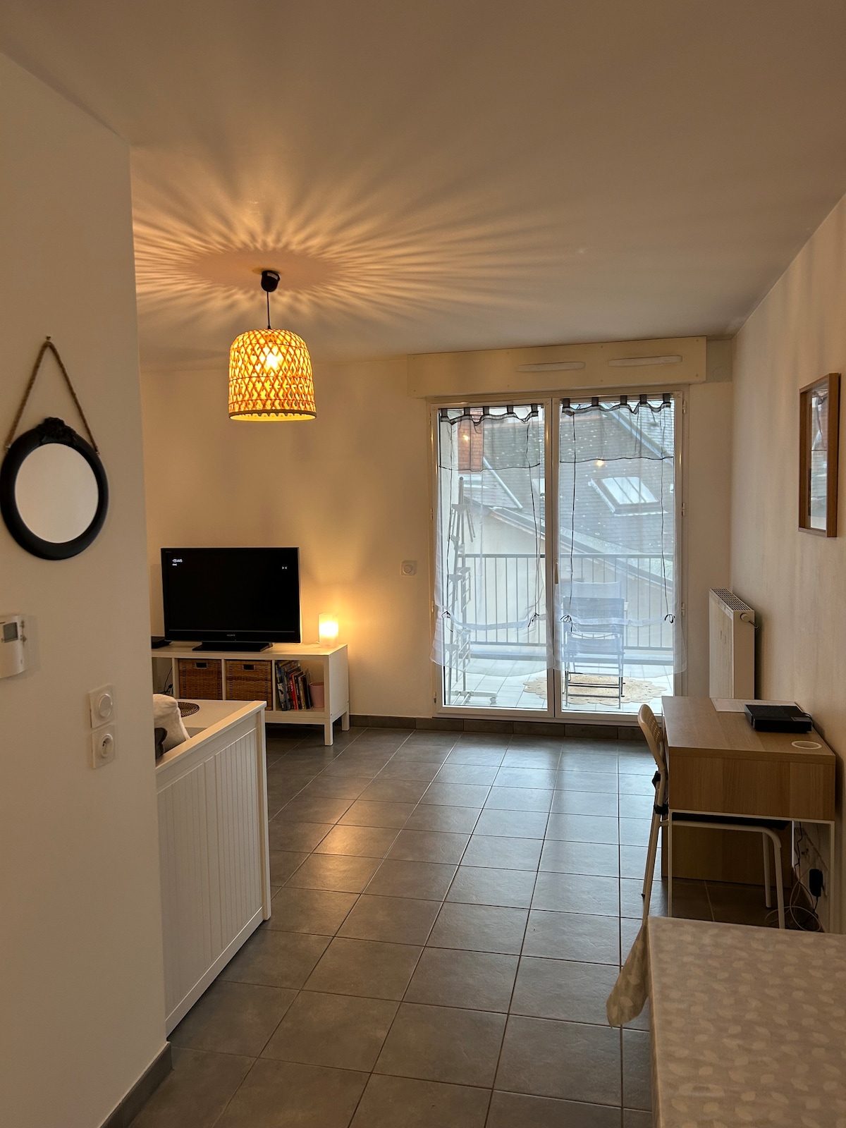 Air-conditioned ✨ studio with balcony – Comfort and Tranquility at your service! 🌿 Free private parking🅿️ space at the foot of the building ✨ Sheets and towels provided 🌐 Free Wi-Fi (fiber) /📺Large LED screen ❄️ Air-Conditioning Private 🌞 balcony with small furniture, coffee table for 2 people Bright living🍽️ room / fully equipped open kitchen 🛏️ Bedroom with 140/200 bed 🚿 Bathroom with toilet and large shower 🧺 Washer