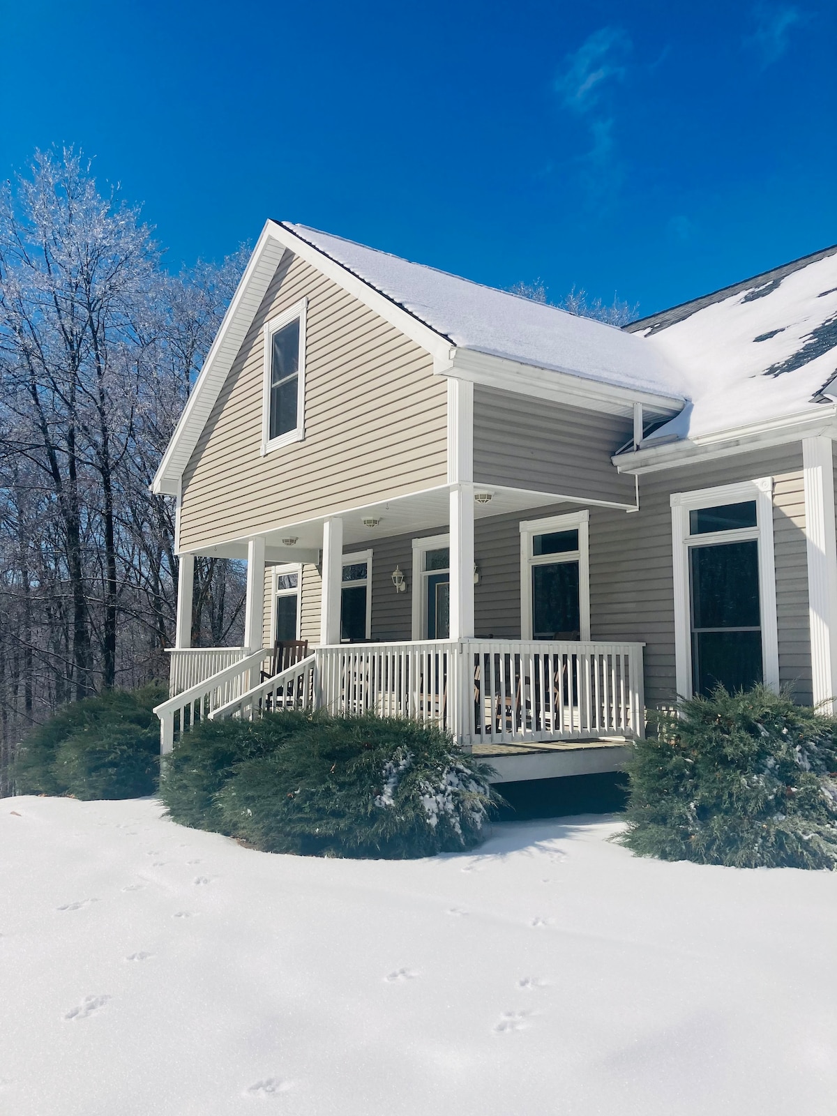 We look forward to welcoming you to the secluded beauty of our space, designed and built by Kenny on our 20 acres of wooded property in the rolling hills of Central Ohio. A floor-to-ceiling glass front provides you with a view of fields green in summertime and ripe with goldenrod in the fall, four outdoor deck spaces invite you to relax in the beauty of nature, and a second story loft suite with a soaking tub are ready to provide you with rest and refreshment.