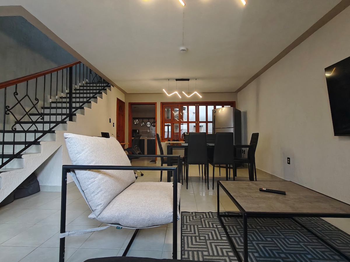 The perfect mix of down town confort and in house entertaiment for your friends or family! From watching the sunset from the hammocks on the tree house, enjoying a bonfire in the yard to laying back after a day trip with Netflix and take out, in front of the fireplace. Plus, amenities like a spacious and equipped kitchen, yard games and even a michelada station. In the heart of town! Only a few steps from the artisanal market, museums, cafés, convenience stores. 5 blocks from the central plaza.