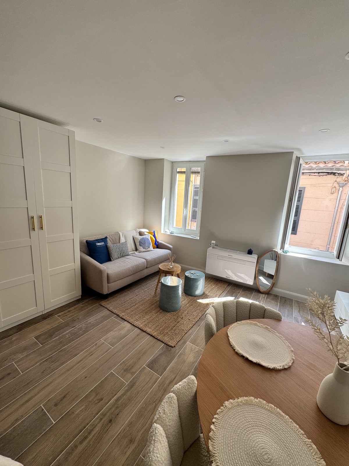 Renovated and air-conditioned apartment, on the 3rd/4th floor - no elevator. Breathtaking view of the port of Sanary-sur-Mer. Surface area of approximately 35 m2 and a 9 m2 terrace. Downtown, port, Provençal market, fish market, shops, beaches: everything is within walking distance! An access card to communal parking lots is available: - Esplanade parking (not covered) about 500 m from the apartment - Picotières parking lot (covered) which is about a 15-minute walk from the apartment.