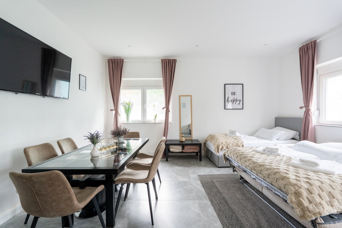 Genieße deinen urbanen Aufenthalt in St Pölten mit bester Infrastruktur vor der Tür. Die elegante und großzügige City.Lounge befindet sich in einem revitalisierten Gründerzeithaus 500 Meter vom Hauptbahnhof St. Pölten. Die Innenstadt mit Restaurants und Bars ist fußläufig sehr schnell erreichbar. Der Check-In findet kontaktlos per Schlüsselbox statt. Parken ist kostenlos direkt an der Unterkunft möglich.