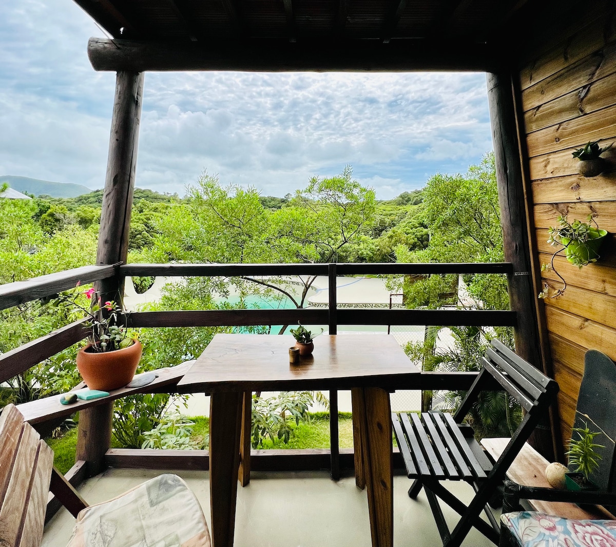 Cabin with direct and exclusive access to the beach, 30 steps to the sand. It has a panoramic view over Pântano do Sul bay, cozy, well decorated and with all comfort in a peaceful environment. Comfortable for 2 adults + 2 in the living room (ideal for children). - Full kitchen, - Air conditioning, - Bed and bath linens, - Barbecue grill, - Beach chairs and umbrella, - Pet friendly, with enclosed garden, - Private gazebo overlooking the beach, - Wifi (400mb).
