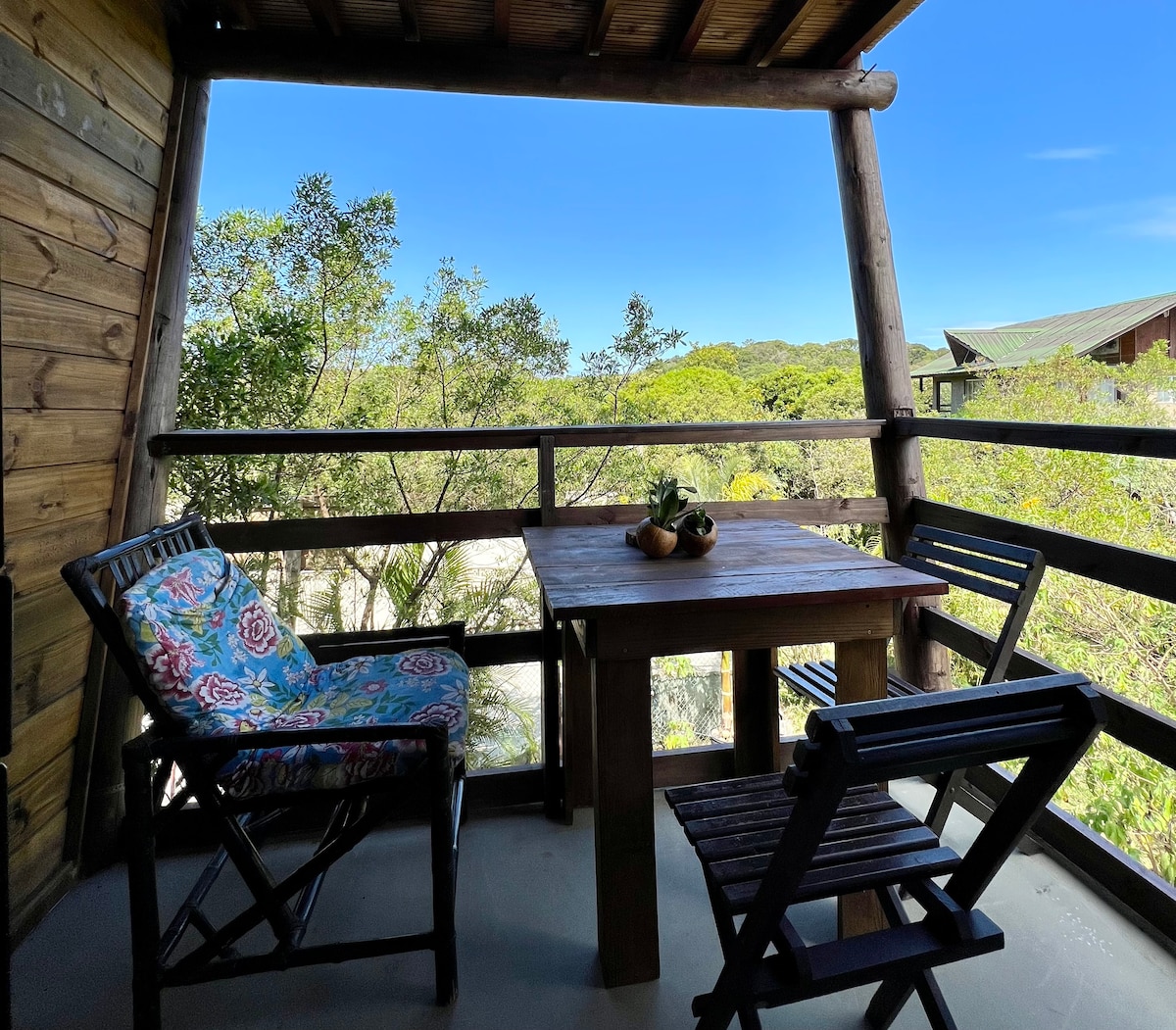Bungalow on a shared property 80 meters from the lagoon - ideal spot for kitesurfing. Private entrance and privacy ! The region is surrounded by nature and 15 minutes walking to the Lagoa city centre. 1 min walking to a bus stop. The bungalow is composed by a external covered deck with dining table, equipped kitchen, full bathroom and a large room with working area and balcony. A comfortable place to relax, enjoy life and the birds singing ! Perfect for couples, singles and remote working !