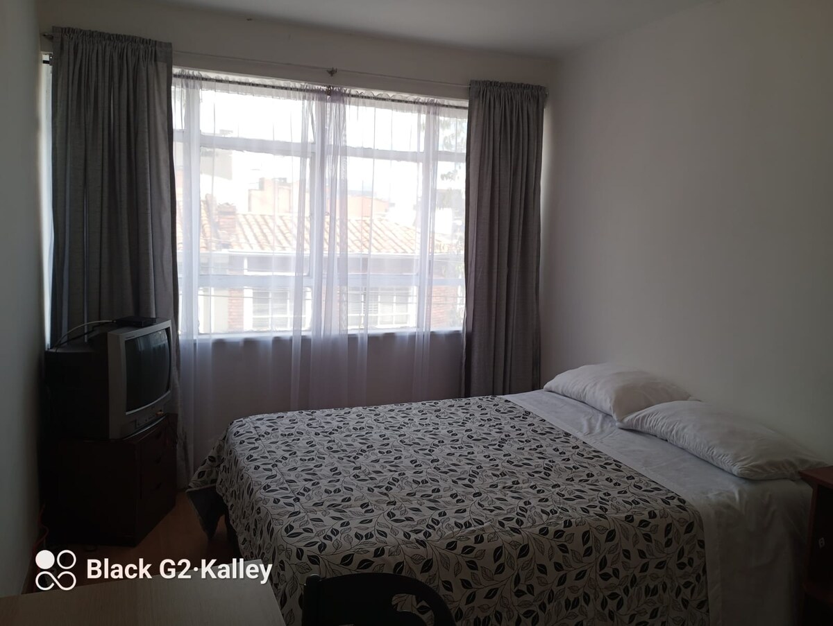 Enjoy this beautiful, peaceful and centrally-located place. Brand new 41 m2 apartment, near access roads and Transmilenio. Family friendly. Safe area with restaurant options. If you decide to cook, you have excellent utensils and a drinking water filter. Features WiFi and hot water. Located on the third floor with independent access by stairs. Exceptional cleanliness, impeccable place. Paid parking on the premises. Great for working.