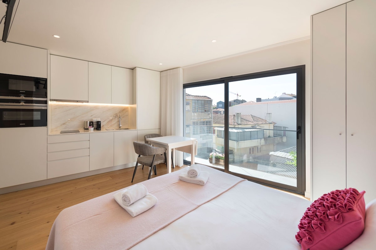 Practical and conveniently renovated studio apartment, in the second floor of a Centenary Building, located in the historic area of Porto known as “the balcony over the city”, with a small balcony with an excellent view over the Douro and Porto. Centrally located to enjoy all the city center has to offer! 10 minutes walking distance to S. Bento metro station and from Ribeira. Aliados Avenue is within a 12-minute walk, while the Clérigos Church is at a 15-minute walk.