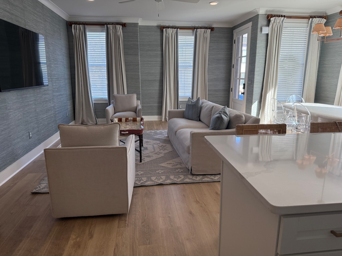 This less than 2 year old stylish townhome is the perfect place to stay. Plenty of seating for ten in this beautiful large kitchen with island, 6 stools and eat in kitchen area for 4. 3 bedrooms each have en suite bathroom, walk in closet and new 42” Roku Smart TVs. Townhome sleeps 8 comfortably, 4 beds total, 2 queen, 2 king. All brand new Westin heavenly mattresses. All mattresses are Westin One Main level bedroom with 2 more bedrooms upstairs. Large sectional in family room with 65” TV