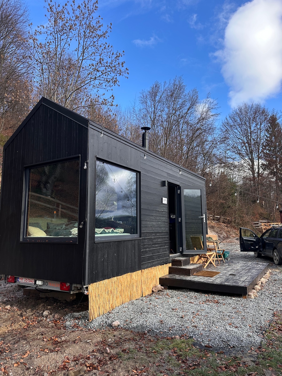 Experience luxury at Ash Cabin, an 18m² forest hideaway with a king bed, panoramic views, loft, underfloor heating and AC. Unwind in the wood-fired hot tub, grill under the trees or relax by the fire. A secluded, romantic escape close to lakes, caves and trails. Wake up to sunlit forest views, enjoy slow mornings on the terrace and end your evenings in complete silence under the stars. Ideal for couples seeking privacy, comfort and a deep connection to nature.
