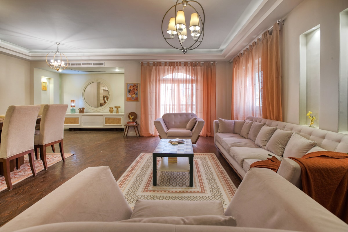 Looking for a cozy stay in central Egypt, there is no better place to book for friends, families, and small gatherings. With a magnificently decorated interior and marvelous hand-crafted wood features, it's the perfect stop to enjoy the rich culture of Egypt. With private patio and swimming pool, there is no better place to experience the best weather Egypt has to offer. You will get to enjoy a luxurious spacious place that can accommodate as many people as you can invite!