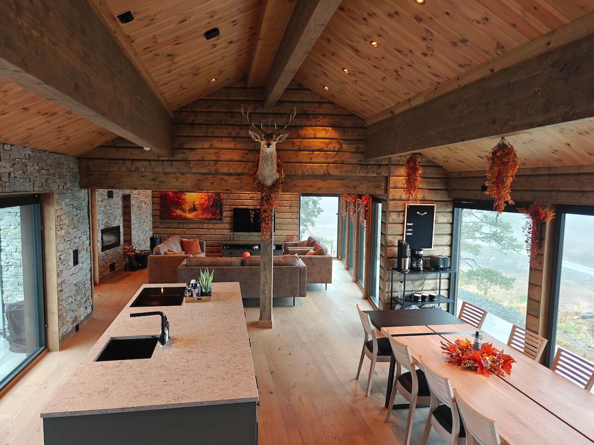 Newly built cabin from 2022 in the middle of an eldorado of cross country trails. The place is the most snowy in the area. Cross-country skiing runs from November to April. The cabin contains 4 bedrooms, loft living room, open living room-kitchen solution, (living room has high ceilings, large bathroom with infrared sauna, private toilet room, laundry room, hallway. Large terrace with exit from the living room. Kitchen is richly equipped with a dishwasher. The cabin has a year-round road, the road goes all the way to the cabin wall. Parking space for 4 cars. Great view.