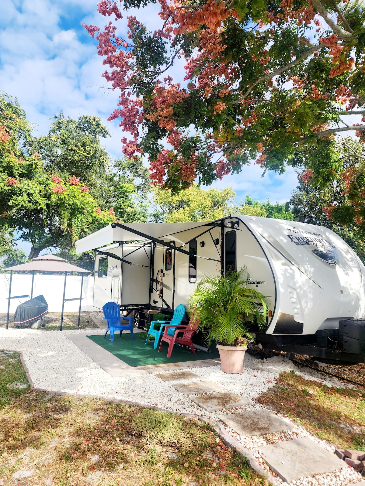 Experience affordable private luxury in this newer destination-style RV, permanently placed on our quiet, tree-filled 1-acre estate in Apopka/Longwood. Tucked away behind a private gate, it’s a serene hideaway that still puts you close to everything. Just 35 minutes from MCO, 25 from Disney & Universal, and under 10 to Wekiva Springs State Park—this spot is perfect for guests looking to explore both natural wonders and world-class attractions. Grill and beach chairs available upon request.
