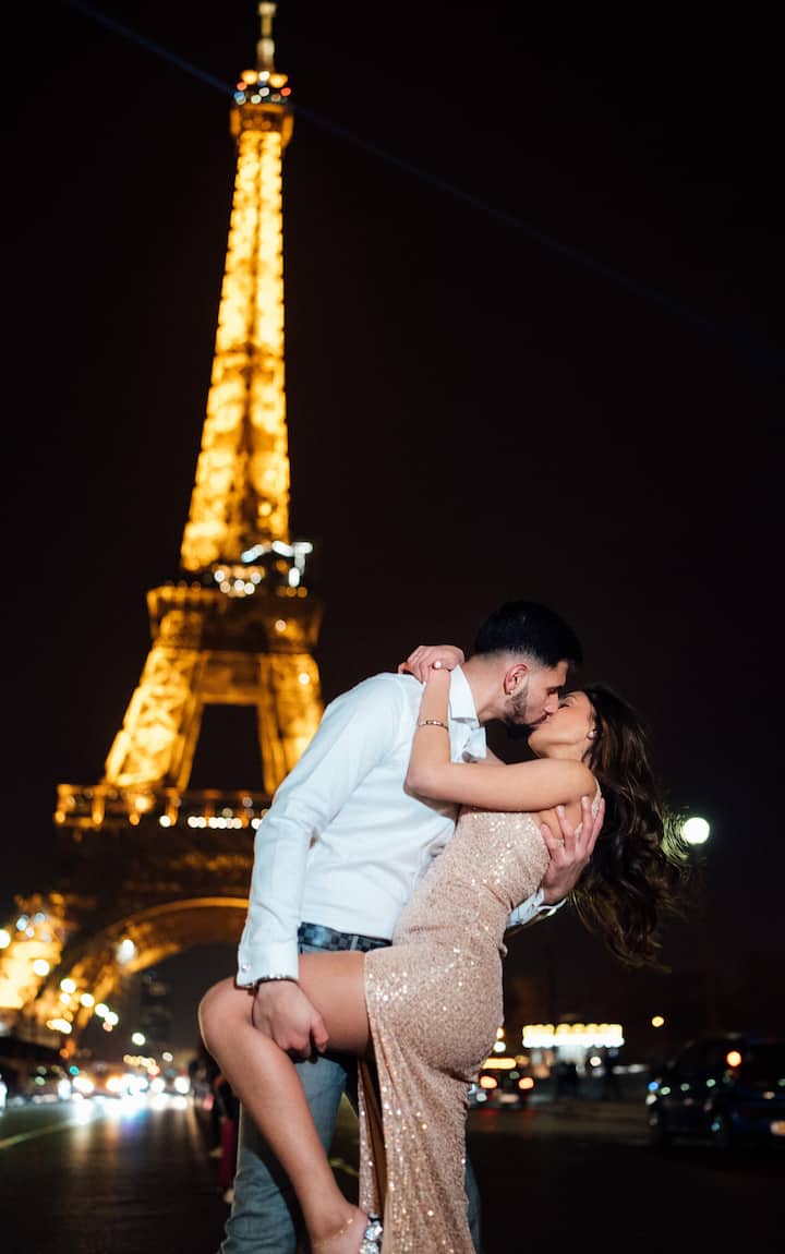 Nighttime photography by the sparkling Eiffel Tower. 30 professionally edited photos, plus all the unedited images. On the same day, I'll send you a link to choose your favorite shots for editing.