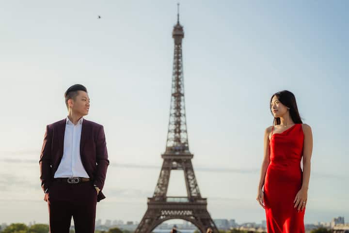 A short and sweet 30 min session at the Eiffel Tower. 15 professionally edited photos, plus all the unedited images. On the same day, I'll send you a link to choose your favorite shots for editing.