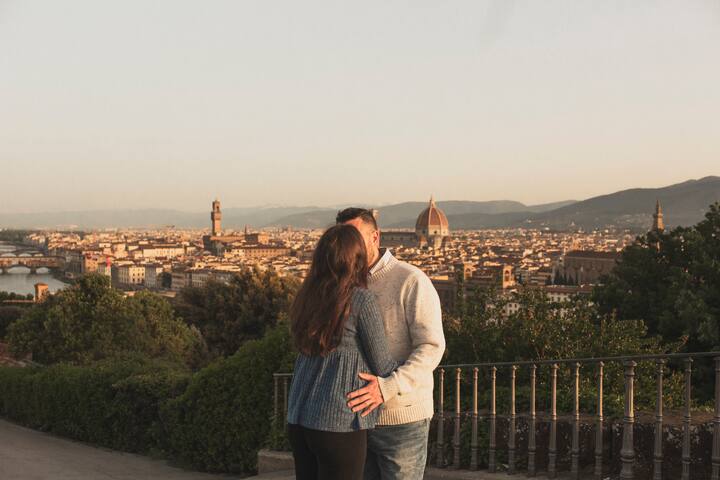 Photoshoot of about 1 hour at Piazzale Michelangelo, at sunrise. Delivery of professionally edited photos in high resolution within 5 days. Tips on poses and locations.