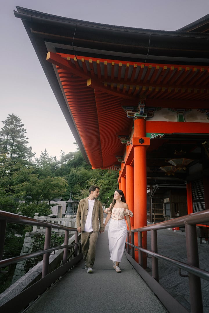 Capture your love with a photoshoot in Kiyomizu-dera. Includes a walk through temples, shrines, and nature, embracing Japan’s spiritual beauty.