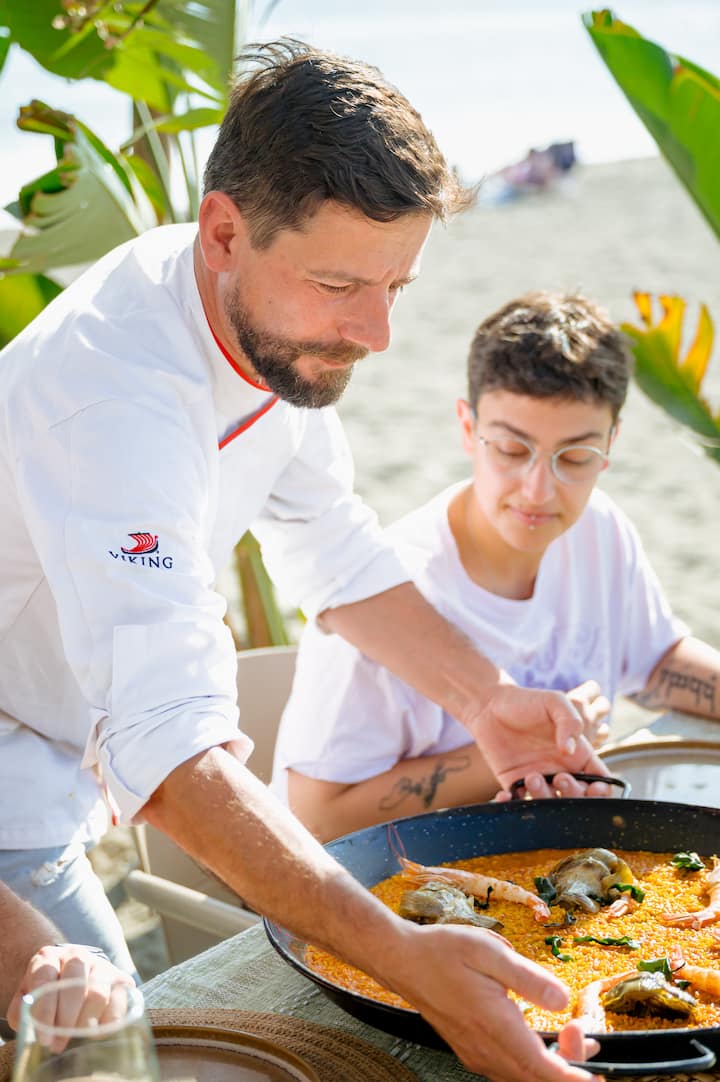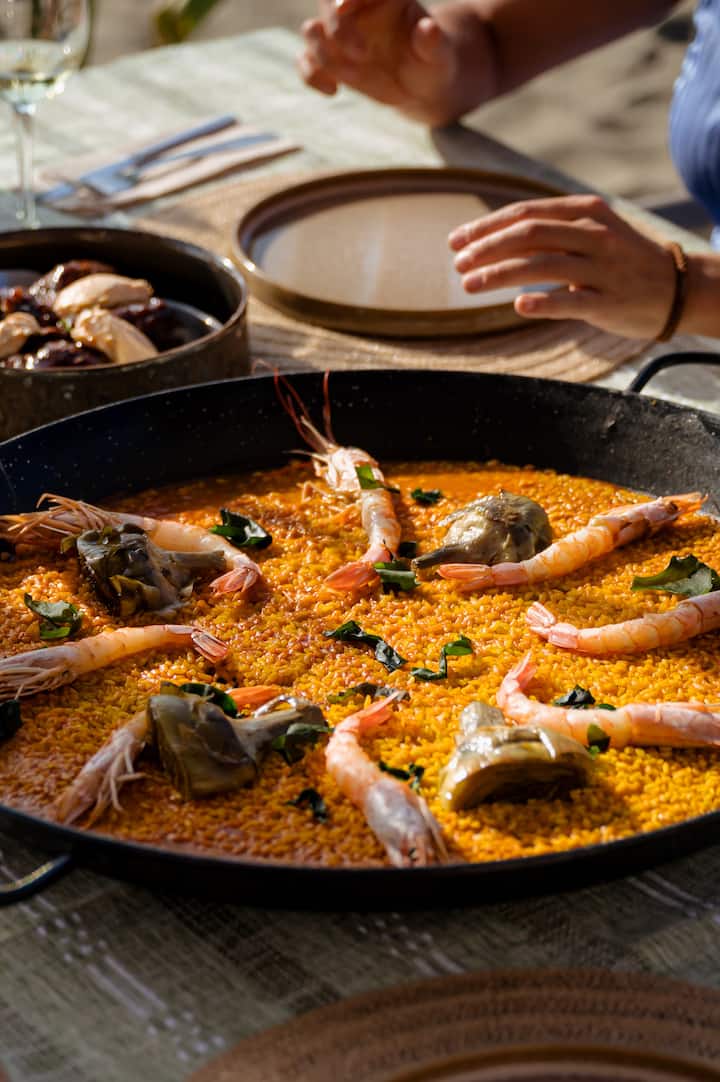 Celebrate Spanish culinary tradition with flavorful paellas, seafood delights, and a sweet finale.