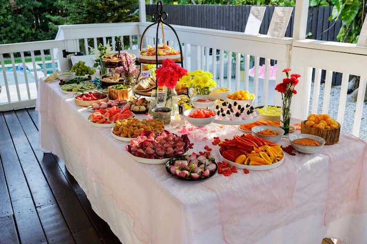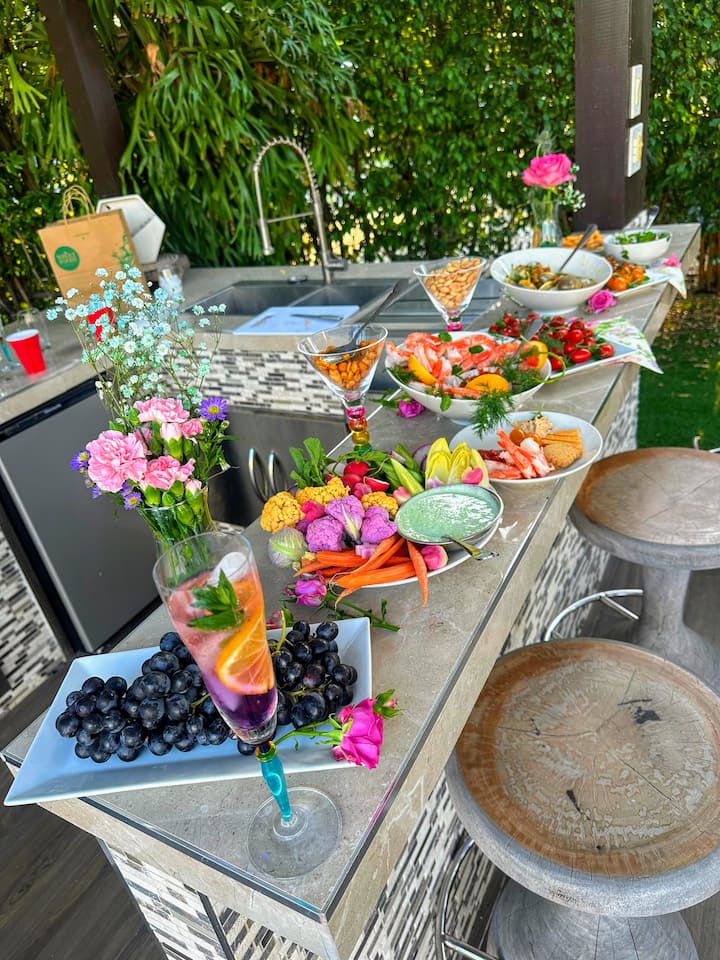 Enjoy meals delivered to your door, perfect for breakfast spreads, grazing boards, or relaxed lunches and dinners. Each dish is prepared with high-quality, seasonal ingredients and presented with a refined touch. Optional enhancements like small floral arrangements or elevated serving platters are available.