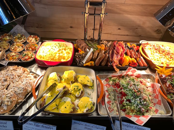 A bold, flavorful brunch with a Tex-Mex charm: parfaits, seasonal fruit, and buttermilk biscuits w/ local jams to start. Enjoy Texas-style eggs Benedict with barbacoa, chorizo & egg breakfast flautas, blueberry cream cheese pancakes, and a spread of breakfast meats and grilled veggies. Includes a seasonal, Texas-themed mimosa bar to toast the morning right!