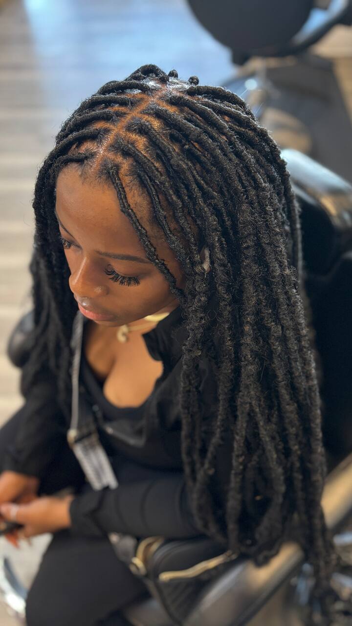 Receive individual braids with a wrapping method at the base to give locs a soft look.