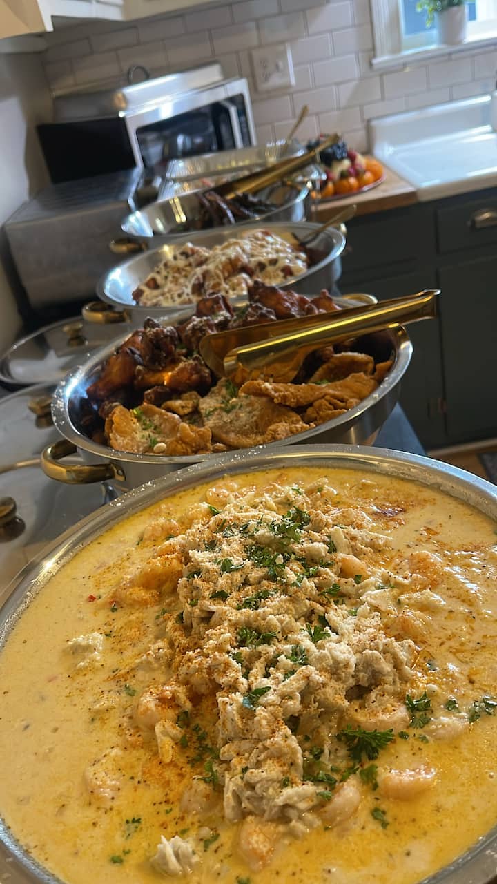 This selection includes Crab Shrimp & Grit Martini’s, Truffle Mac & Cheese Balls, Garlic Shrimp Scampi Skewers, Seafood Spinach Dip w/ Toasted Baguettes & Truffle Lemon Pepper Wings