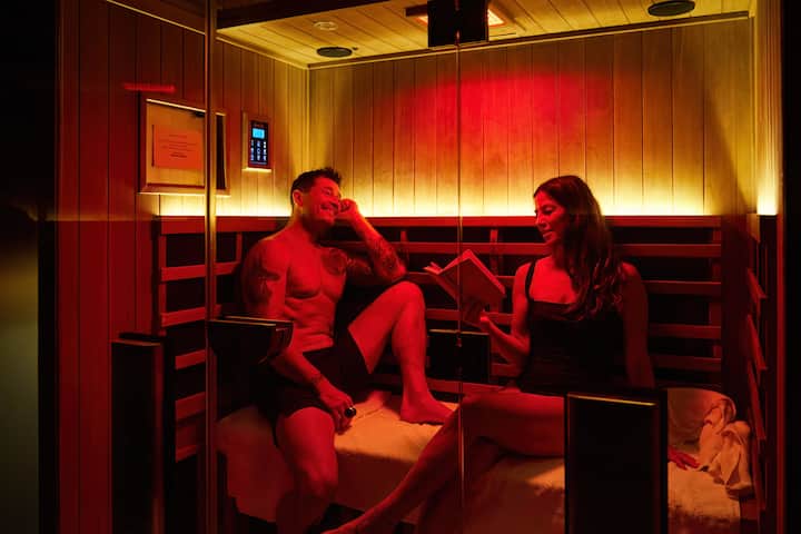 Enjoy a relaxing and refreshing sweat session for Couples in your own private room. our Full spectrum Infrared Saunas offer deep detox, reduced inflammation, improved cardio vascular health and general wellbeing. The addition of red light helps boost skin health and boosts energy levels. Towels are provided, blue tooth connectivity, bespoke experience.
