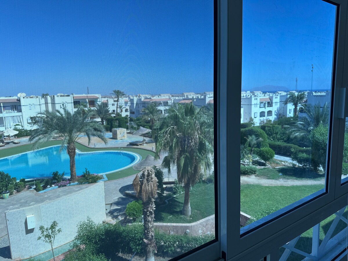 Come and experience the best of your vacation at our furnished hotel studio with pool & sea view in Domina Coral Bay Resort (5*) in Sharm El Sheikh It includes 2 single beds, 2 sofa beds, a bathroom, bed linen, towels, a TV, a small kitchen, and a terrace with a mosquito net. A 2 km beach, 7 swimming pools, a 5,000 m Salt Lake, a gym with a sea view, water sports & entertainment. The studio is 9km from the airport, 10 minutes from SOHO Square & Nemaa Bay; Ras Mohd Park is 20-25 km away.