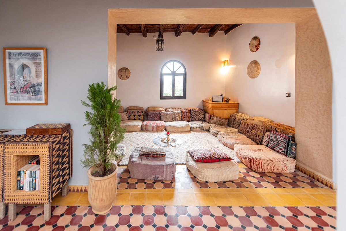 Bienvenue dans notre villa beldi cosy,seulement à quelques minutes d’Essaouira Profitez d’un cadre calme à la campagne entouré de verdure, idéal pour se ressourcer en couple ou en famille. La villa dispose de 2 chambres spacieuses, d’un salon lumineux, d’une cuisine équipée et d’une piscine privée. Chaque espace a été pensé pour offrir bien-être et intimité. Je serai ravi de vous accueillir personnellement et de vous aider à découvrirVotre confort et votre satisfaction sont ma priorité
