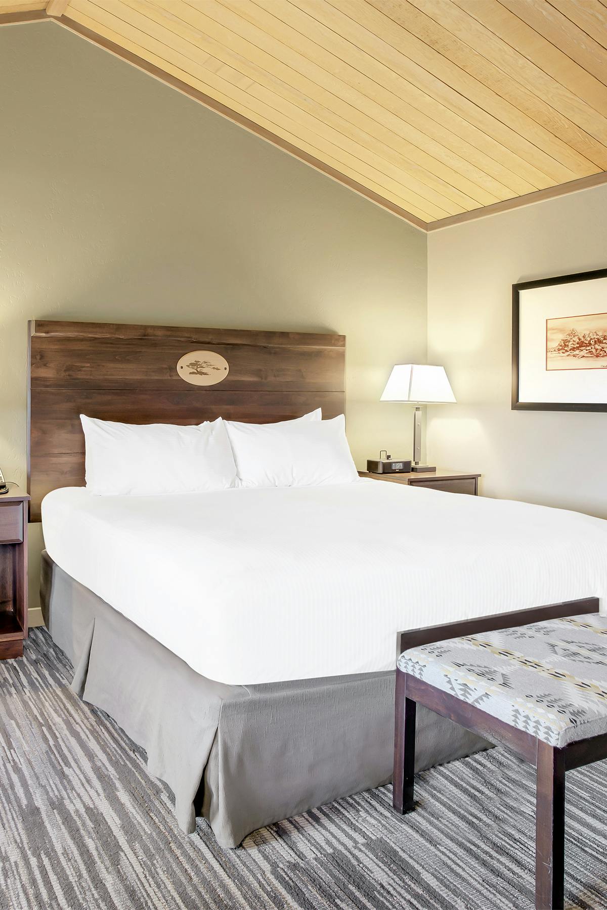 Our queen room offers guests an inviting place to rest and unwind after a day of exploring the Oregon Coast. Offering a queen-size bed with a plant-based foam mattress and eco-friendly pillows and sheets, Queen Rooms also include a 55” flat-screen television, a Himalayan rock salt lamp, a sound machine, and a bathroom with a tub/shower combo. Queen rooms are located on the ground level and have a private patio with a view of the harbor.