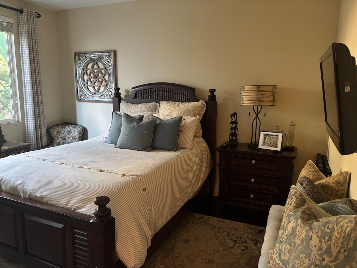 Bedroom is 2 steps from front door. 😊 Large home with lots of windows and a happy vibe. You will feel comfortable. Mini Fridge in room. The dog in the photo does not live here, but there is a couple of outside/ inside cats. Very quiet neighborhood. There are 2 Private heated pools to enjoy. You can check in as late as you like. Wonderful park to walk, 1 minute away. We are 1 mile from Old Town Tustin, which is a wonderful are to walk, shop, dine & the greatest French Bakery in California!