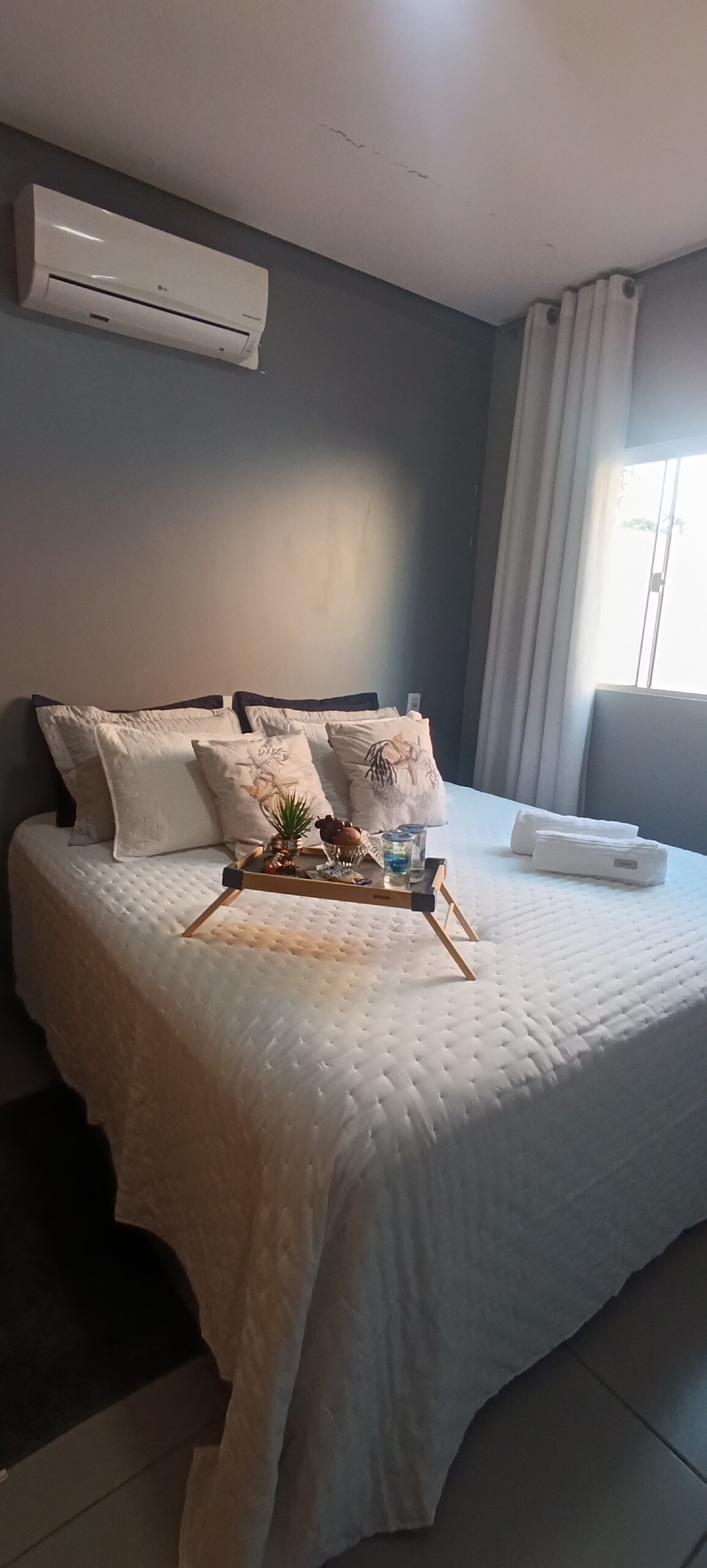 Cozy house located in Residencial Aquarela Brasil, a great choice for those seeking tranquility and comfort with 24-hour security. The house has a modern gourmet space. Approximately 10 minutes from Sinop airport and easy access to the city center, making it ideal for travelers. If you want to know more about the amenities, we are at your disposal.