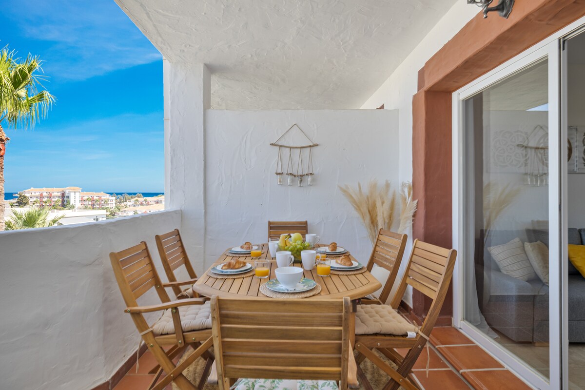 Our newest & luxurious apartment in Calahonda (Marbella). ✓ Fully renovated ✓ Suitable for 4 persons (134m2) ✓ 2 large bedrooms (1 with sea views) ✓ 2,5 bathrooms ✓ Fully equipped kitchen ✓ Modern living room with HD TV, Netflix and sound docking station ✓ Air conditioning/ heating ✓ WiFi ✓ Amazing balcony with dining and lounge set, a BBQ and two sun loungers ✓ Community with 3 pools with sun loungers ✓ Free parking in the underground garage ✓ A safe