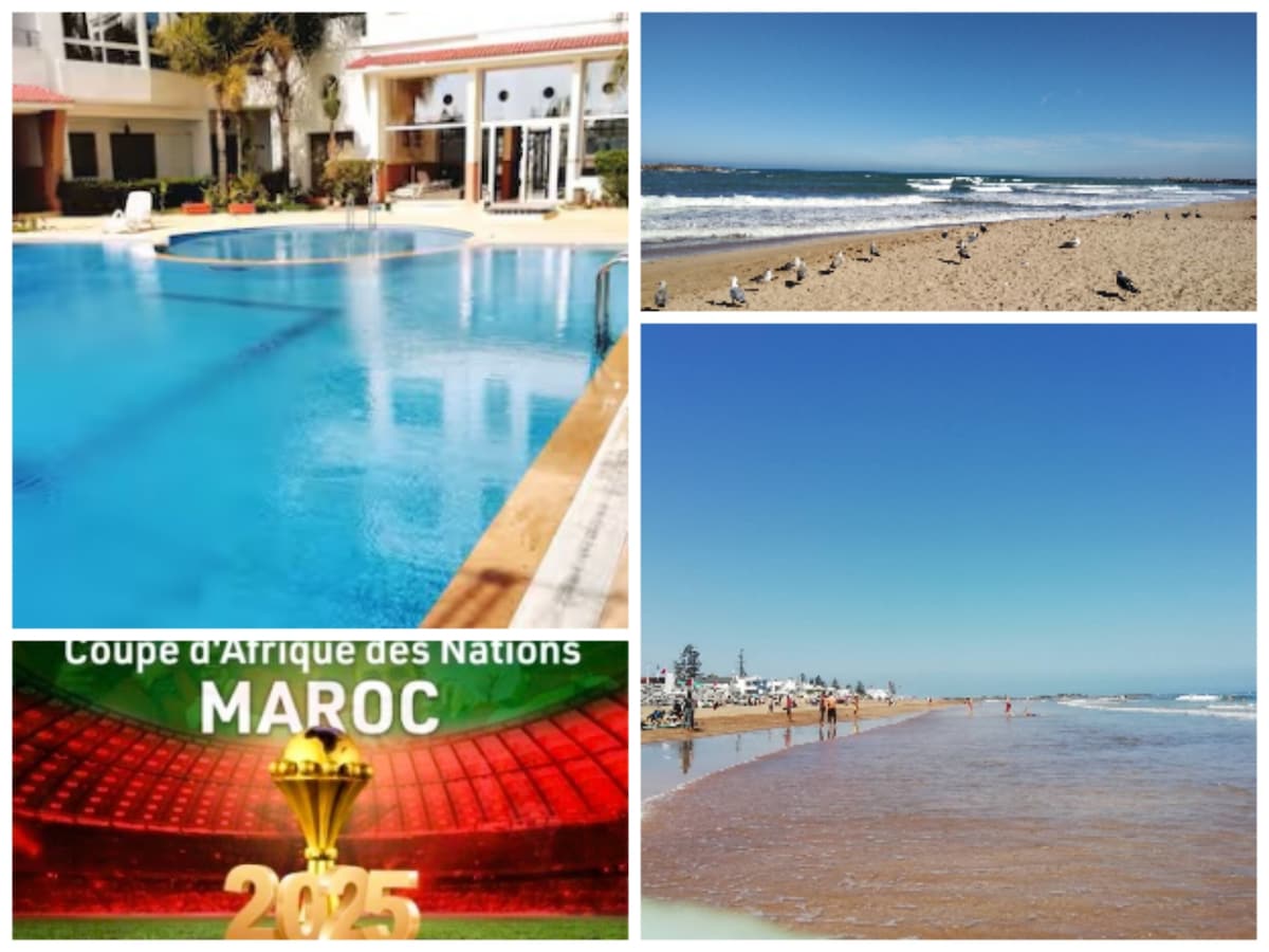 This peaceful and spacious home offers a relaxing stay for the whole family . It combines convenience , comfort and calm . With its spacious and stylish living room, 3 comfortable bedrooms, and terrace with pool views, offers you a pleasant stay. The apartment is 500 m from the skhirat beach (one of the best beaches around Rabat). The residence has two private swimming pools, for children and adults, garden and free underground parking and surveillance camera.