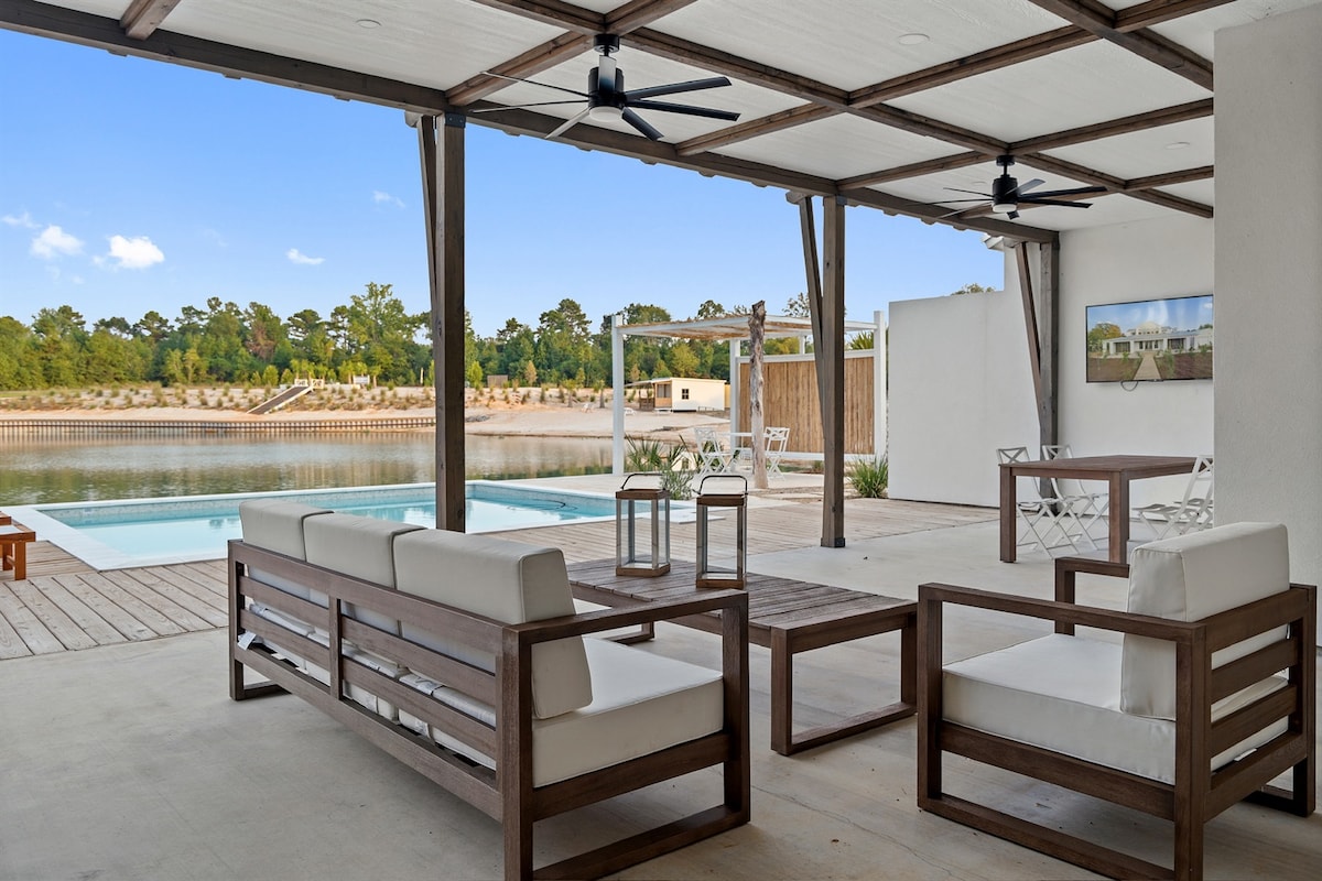 Welcome to our private oasis nestled within the city limits! This 4400 sqft home, 10-acre estate sleeps 10 and features a gourmet kitchen, pickleball, private 2-acre pond w/ covered dock, swimming pool, spa and fire pit. Relax in the screened patio, 2 family rooms, and a master bedroom fit for royalty. With an office and laundry, this retreat offers both luxury and convenience. The backyard is canopied under huge oak trees, resembling a beautiful park. Only 1-mile from shopping and restaurants.