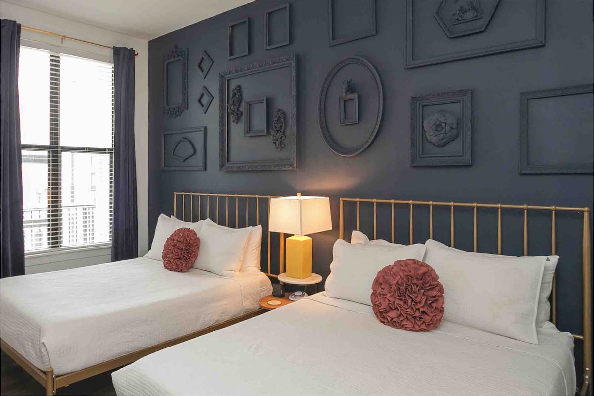 Our 1st luxury apt in the Burnham building. I had so much fun designing this one with the assistance of my amazing designer friend. PERFECT location to get the FULL Nashville experience! Walking distance to all attractions. Enjoy the GORGEOUS pool by day & fire pit at night, plus a gym! Broadway (Honky Tonks & Live Music), Bridgestone, Nissan Stadium, The Music City Center, Ryman Auditorium, The Convention Center, Honky-Tonks, Printer's Alley, Ole Smoky Moonshine & more.