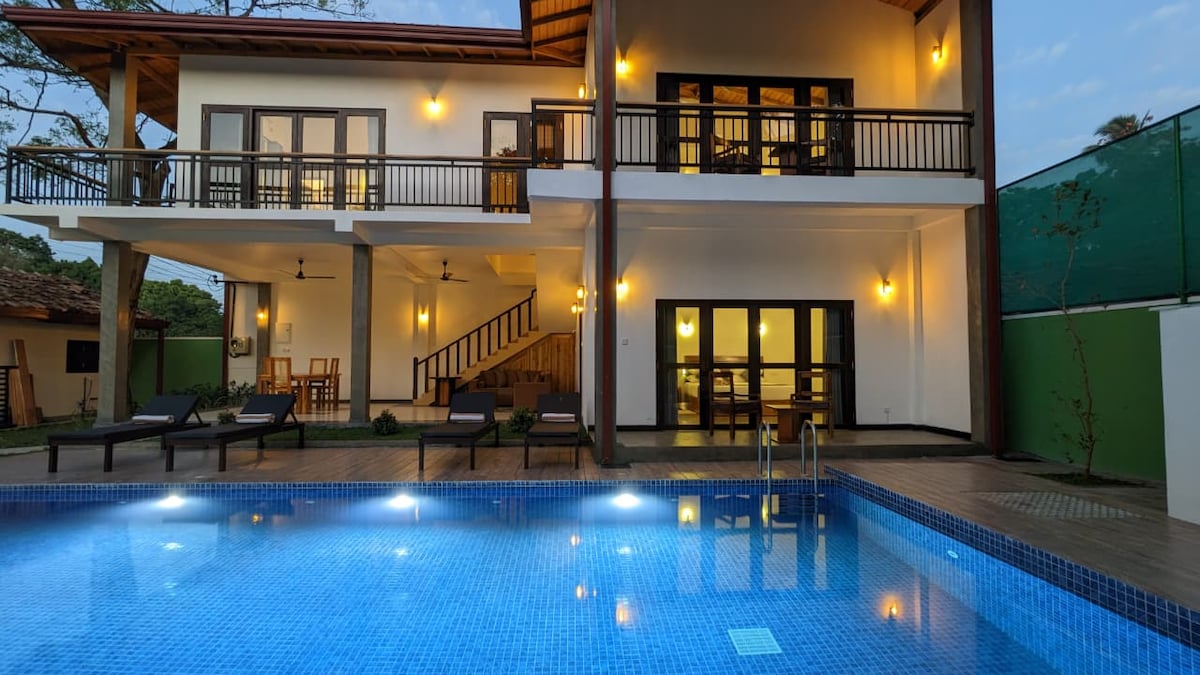 A cozy, uniquely designed private SMART villa, ranked among the top 1% of stays in Hikkaduwa. Just a few minutes from the beach, it blends modern tech, luxury, and sustainability, perfect for families, digital nomads, and groups. ✨ Guests say it’s even better than the pictures, with unmatched hospitality! Whether working remotely or relaxing with loved ones, this private villa feels like home with extra comfort and style.