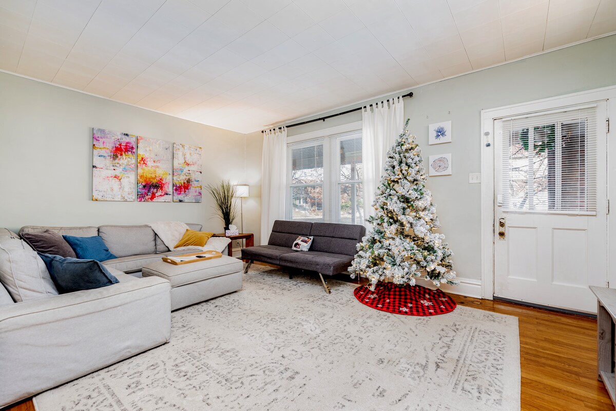 Discover the charm of this historic 120+ year-old condo, offering over 900 sq ft of comfortable living space with two bedrooms and one bathroom. Enjoy the blend of timeless style and modern updates, including ceramic tile in the kitchen and bathroom, carpeted bedrooms, and hardwood floors in the living areas. Street parking is available, with optional garage access for longer stays 5+nights. Includes a refrigerator, HVAC, dishwasher, stove, microwave, high-speed WiFi, and Smart TV