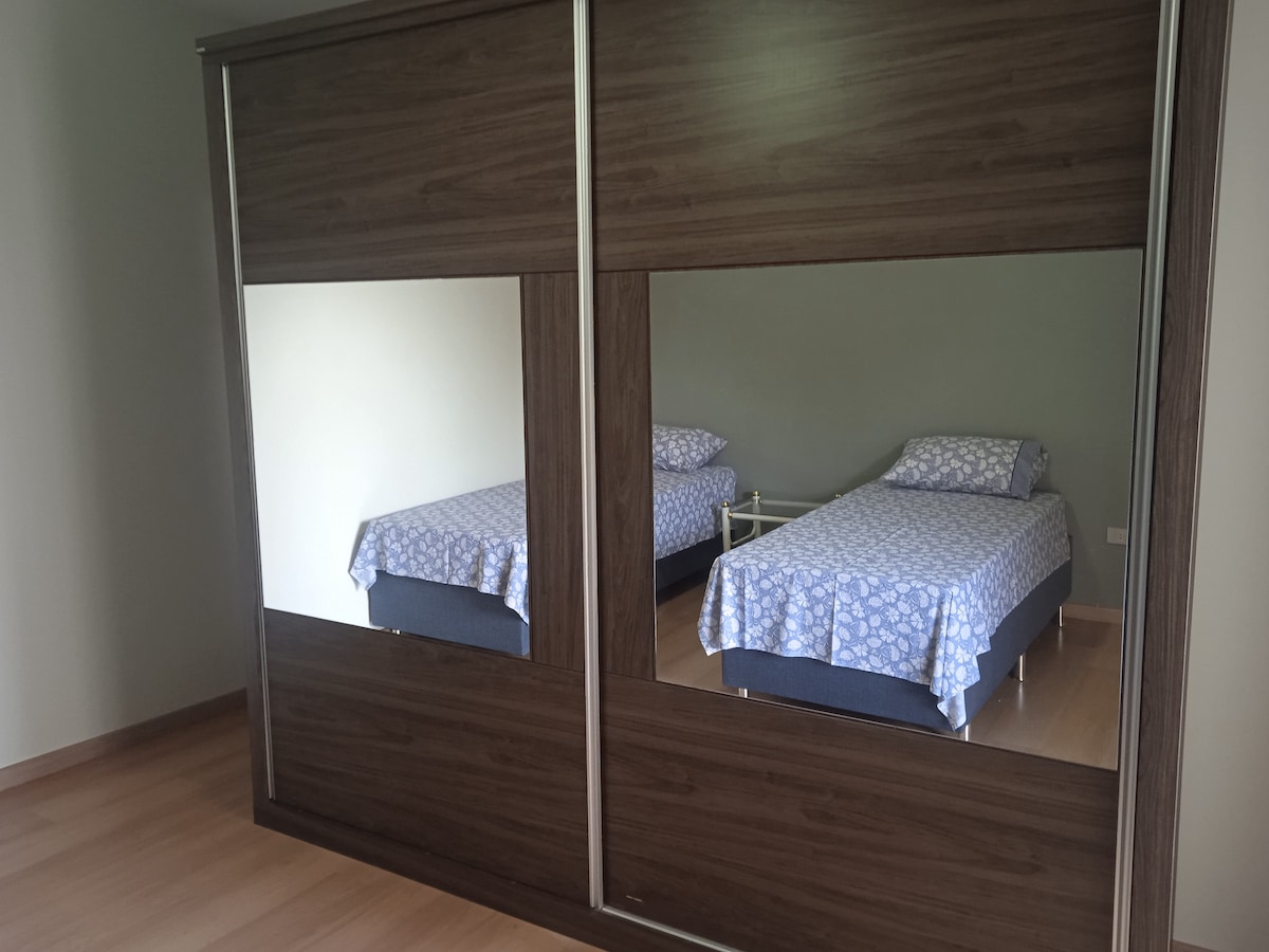 The apartment comfortably accommodates four people, and an extra mattress can be added, consisting of a double bed and a bunk bed. It has a private living room, kitchen, bathroom and laundry area. The apartment is equipped with air-conditioning, a 50-inch Smart TV, refrigerator, microwave, stove, coffee maker, blender and household utensils. The common area consists of the garage. The neighborhood is quiet, as is the city.